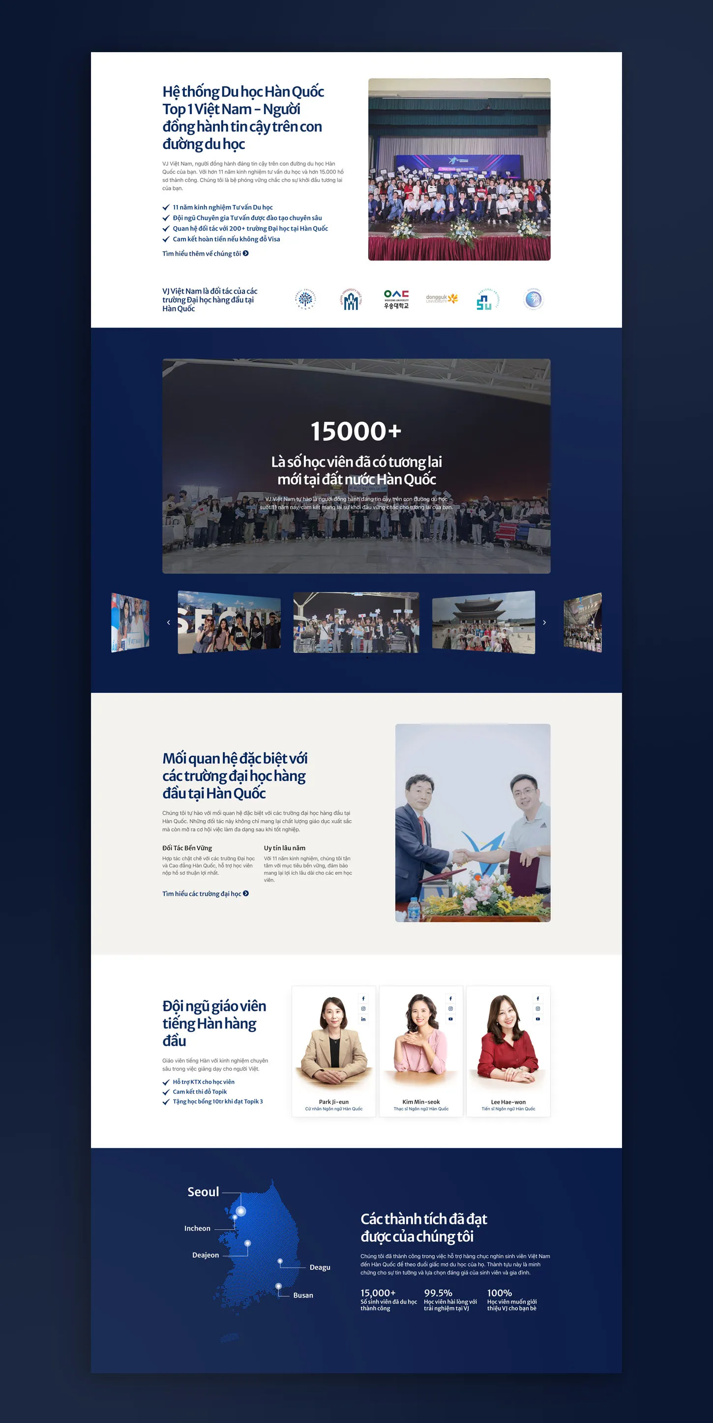 The enhanced digital presence successfully communicates VJ Vietnam's market leadership position. The redesigned platform showcases 11 years of credibility through strategic content placement and visual design that builds trust with both students and parents.