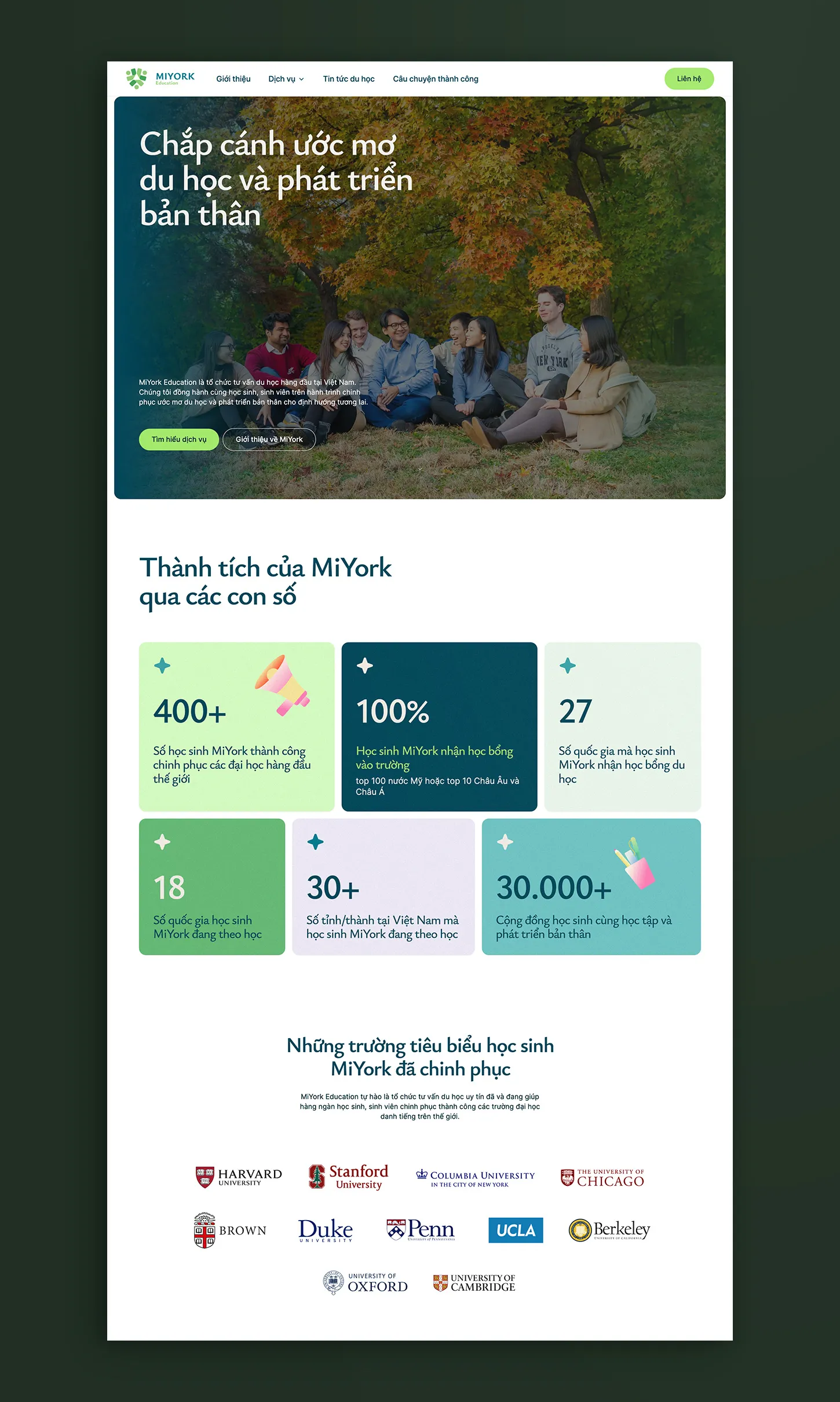 Through this strategic approach, MiYork Education successfully established a strong digital presence that effectively communicates their unique value propositions. The new website design resonates deeply with their target audience while positioning MiYork as a player delivering incomparable service in Vietnam's education consultation market.